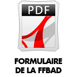 - le formulaire de la FFBaD dûment rempli à télécharger en cliquant-ici - un questionnaire de santé, dûment rempli à télécharger en cliquant-ici doit